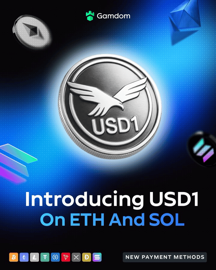 Gamdom has added support for USD1 on both Ethereum and Solana blockchains, in addition to adding BSC deposit methods!