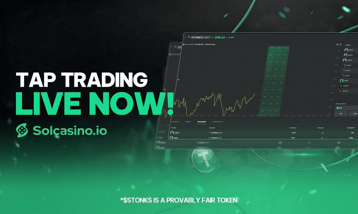 Solcasino has launched Tap Trading, an innovative way for traders to predict where the price will lead in short timeframes.